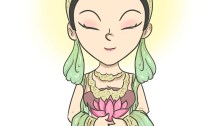QuanYin would sit and listen to the ocean flow in and out. Absorbed in the sound of the waves and the silence they left behind, she let go of all thoughts. Without thought these sounds were just vibrations so she became perfectly still. In this stillness she moved toward Enlightenment. As she transcended other types…