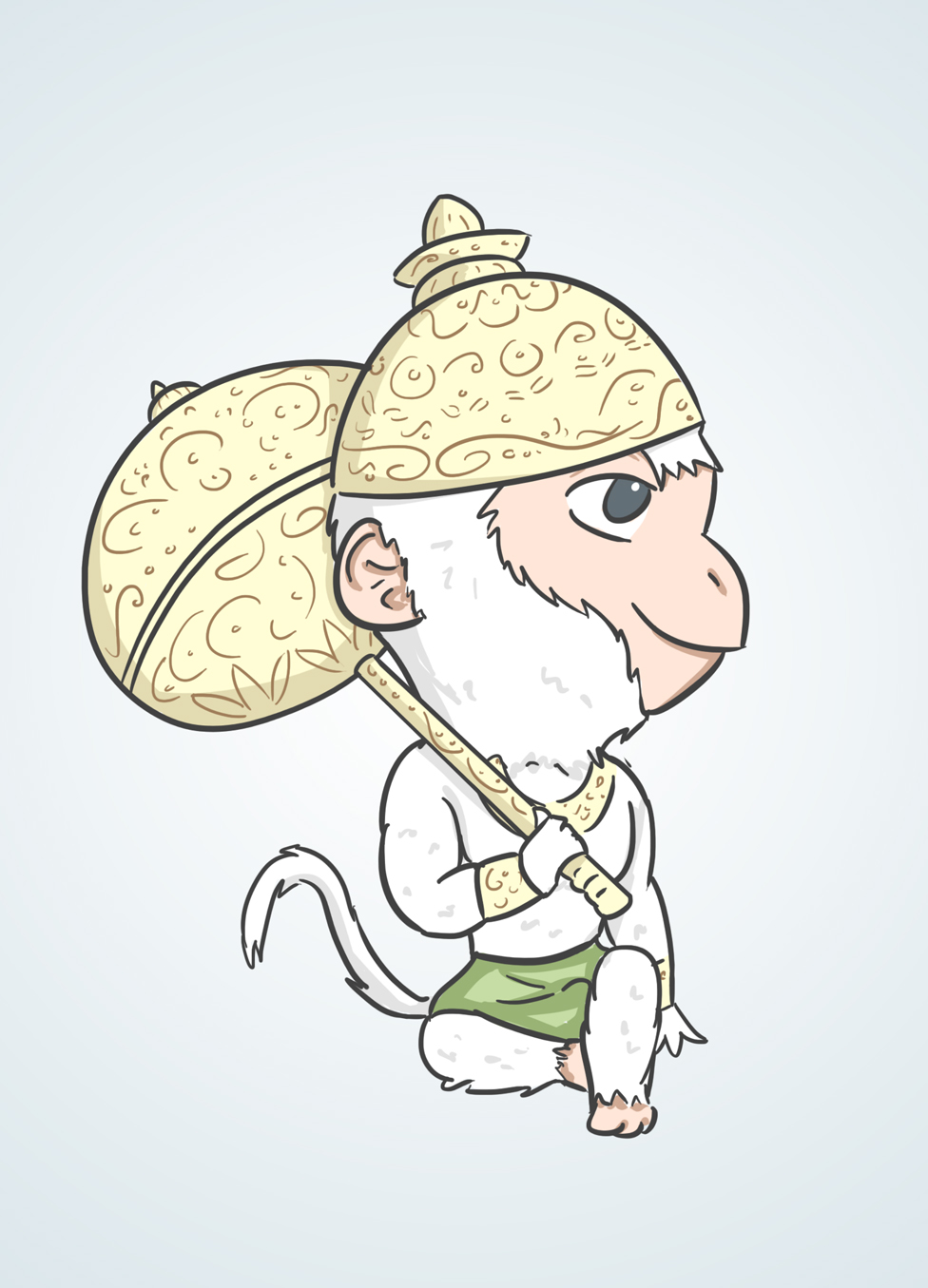 Hanuman is half monkey and half human. There are many stories about him and most highlight his amazing magical powers such as flight, the ability to change size, and immortality. As a child these gifts often got him into mischief and drove people to avoid him. As he matured he realized his gifts were tools and advantages that made him uniquely powerful.